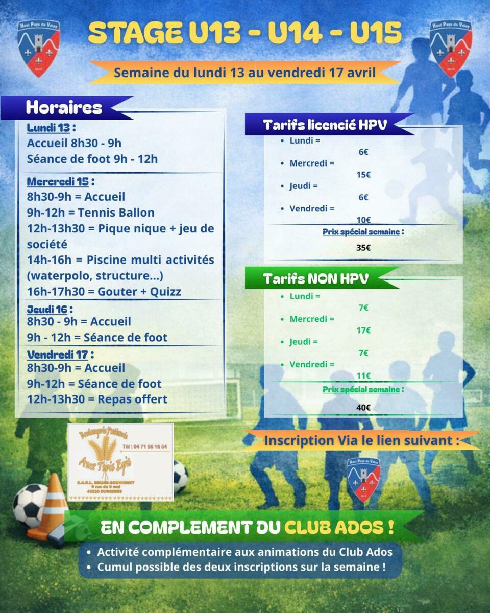 ⚽ STAGE FOOT U13-U14-U15 – en partenariat avec le @Groupement