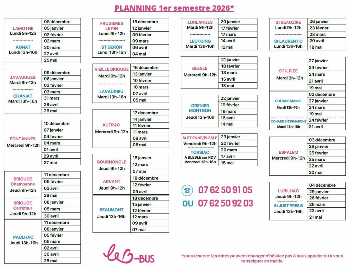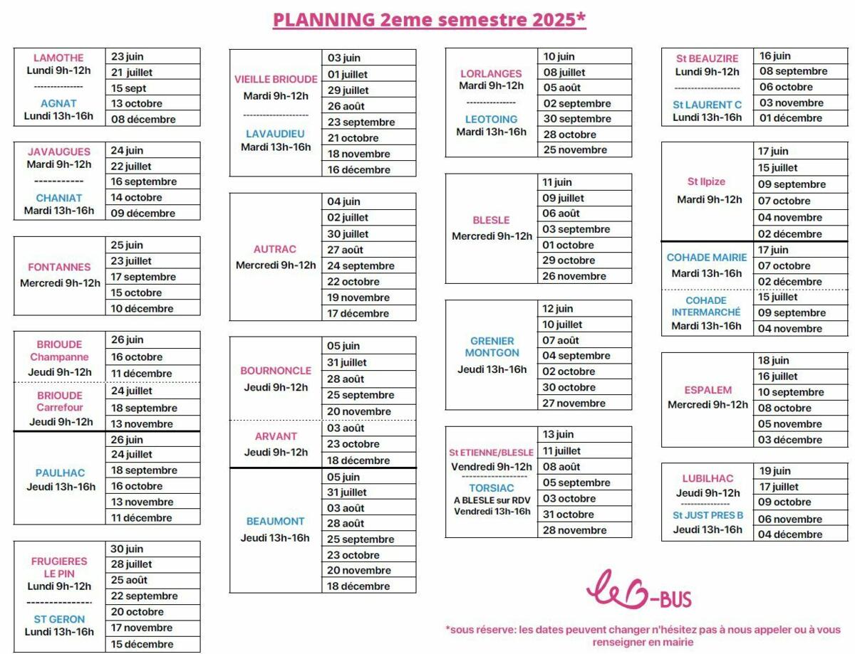 Pour connaître les dates et lieux exacts de la tournée du B-Bus, consultez le planning officiel : https://www.brioudesudauvergne.fr/services-a-la-personne/b-bus/
