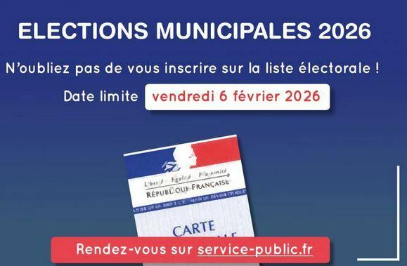 La date limite d'inscription sur les listes électorales est le mercredi 4 février via le formulaire dématérialisé sur le service public : https://www.service-public.gouv.fr/particuliers/vosdroits/R16396 et le vendredi 6 février directement en mairie ( avec CNI et justificatif de domicile de moins de trois mois).