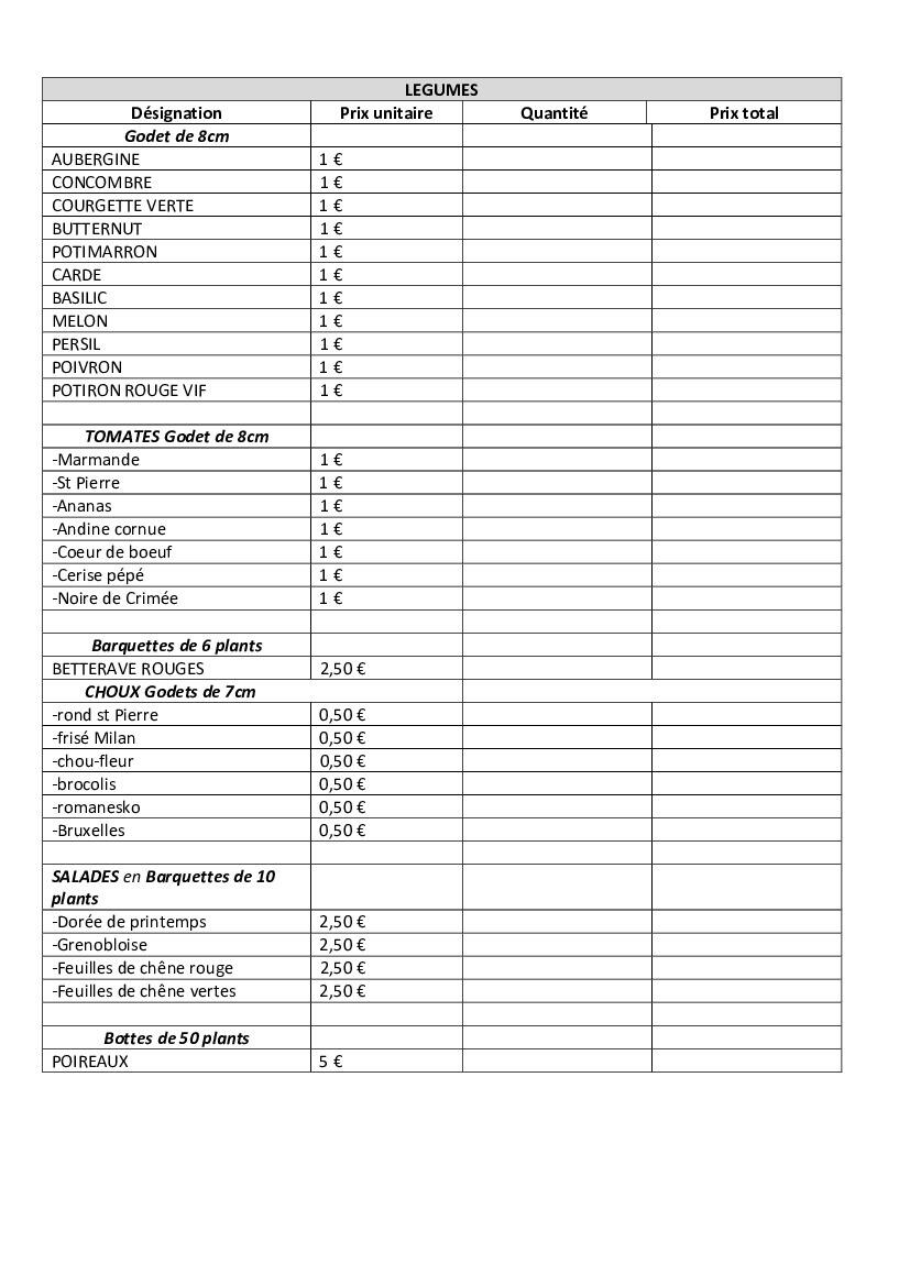 Les commandes seront à récupérer le Mercredi 6 Mai au stade de foot de Cougeac/Lamothe de 16h à 18h30, et le règlement s’effectuera lors du retrait des commandes.