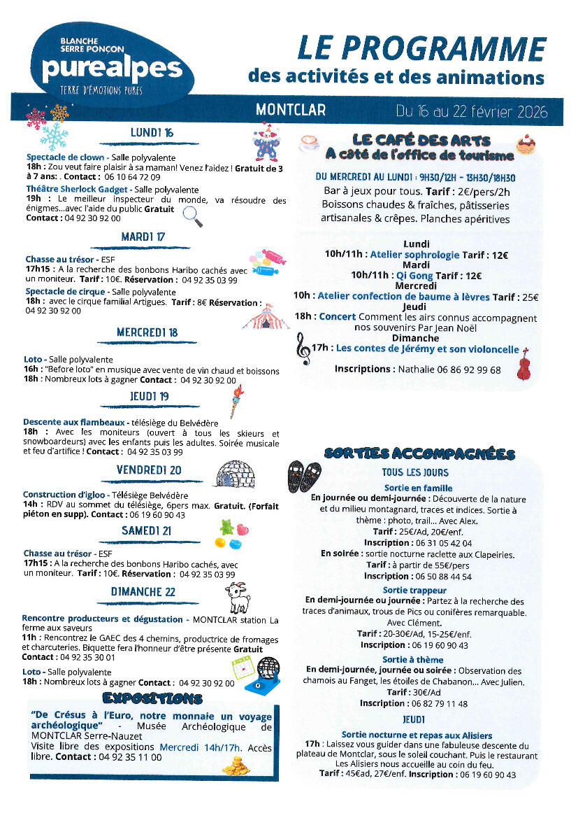 PROGRAMME ANIMATIONS du 16 au 22 février 2026