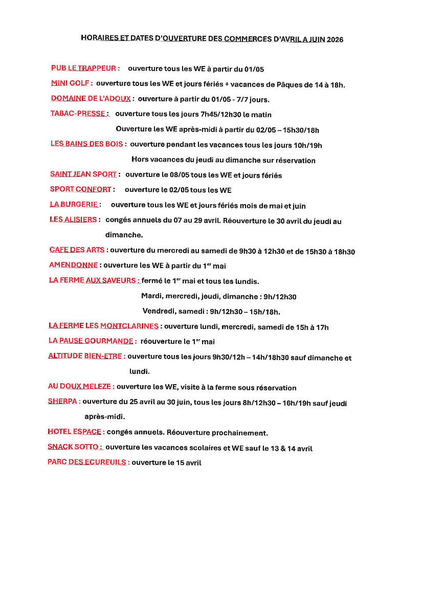 HORAIRES ET DATES D'OUVERTURE DES COMMERCES