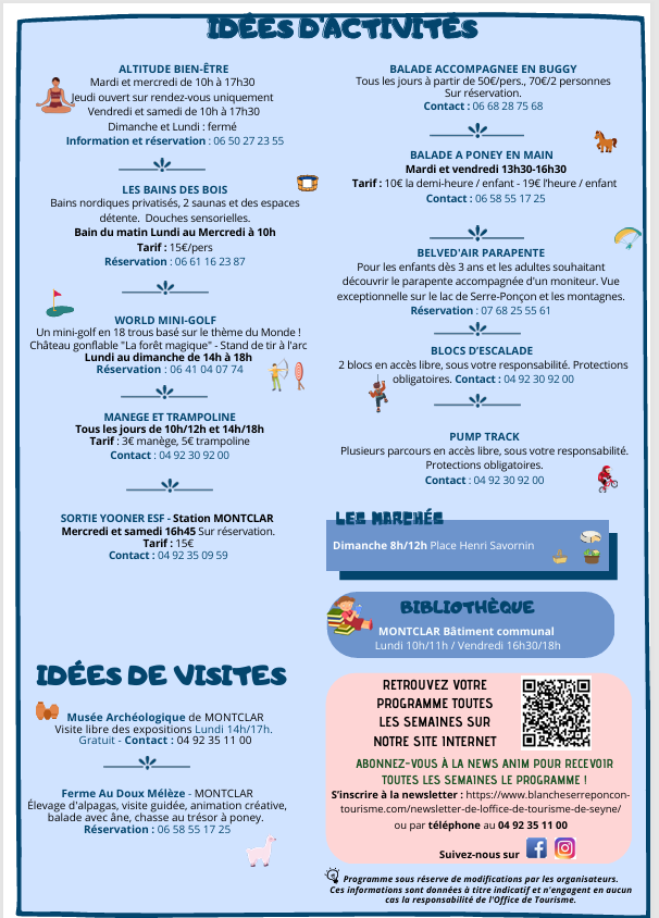 Programme des animations et activités du 29/12 au 04/01 27/12/2025 Programme des animations et activités du 29 décembre au 04 janvier