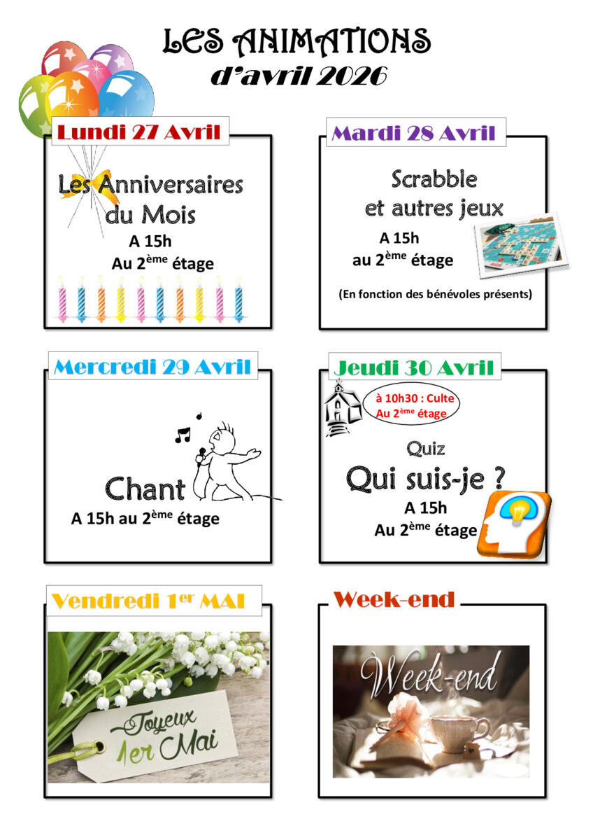 Programme de la semaine du 27/04/26 au 03/05/26