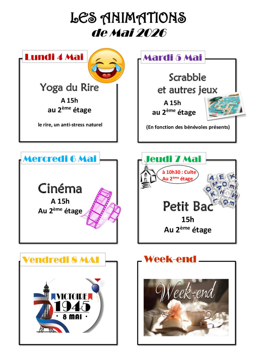 Programme de la semaine du 4/04/26 au 10/05/26