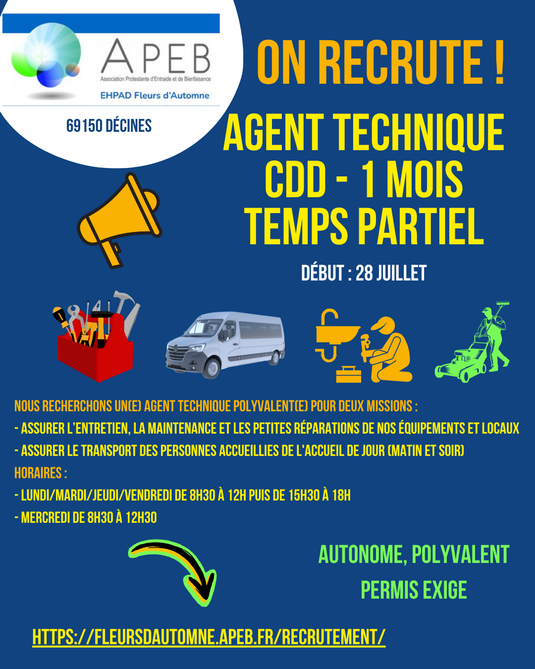 / Nous recherchons un agent technique remplaçant pour l'été !