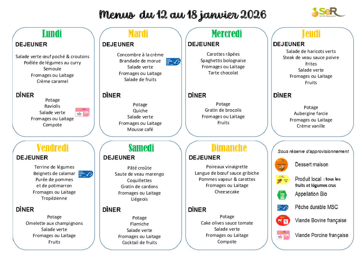 Menus du 12.01.2026 au 18.01.2026