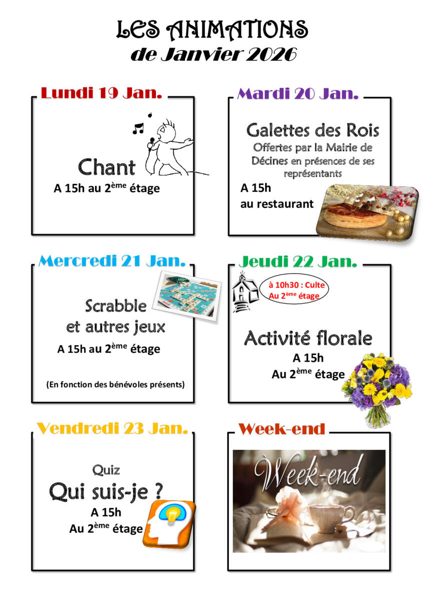 Programme de la semaine du 19/01/26 au 25/01/26