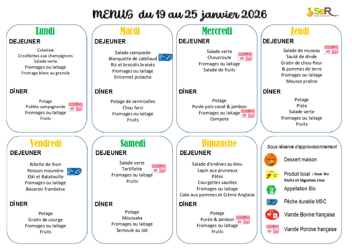 Menus du 19.01.2026 au 25.01.2026