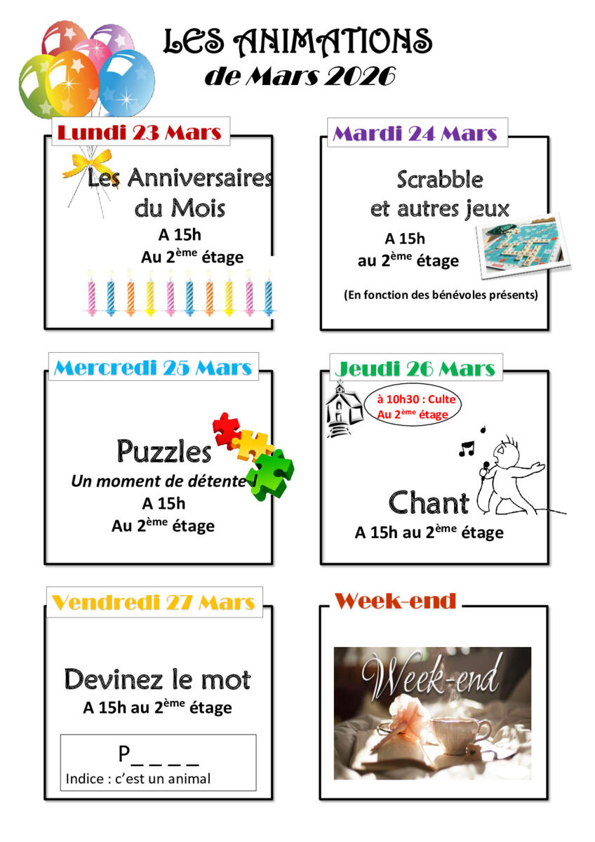 Programme de la semaine du 23/03/26 au 29/03/26