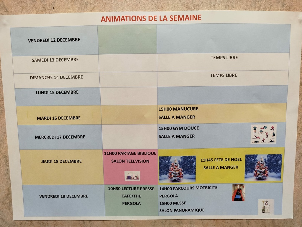 / Animations de la semaine du vendredi 12/12 au vendredi 19/12