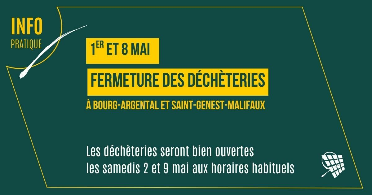Vos déchèteries de Bourg-Argental & Saint-Genest-Malifaux seront fermées.