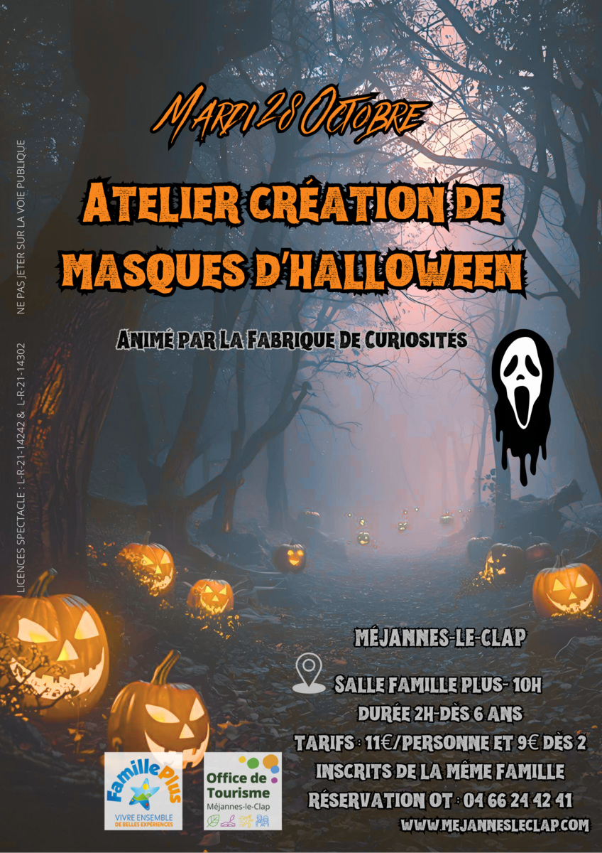 Atelier Création de masques d'Halloween le 28 octobre 2025