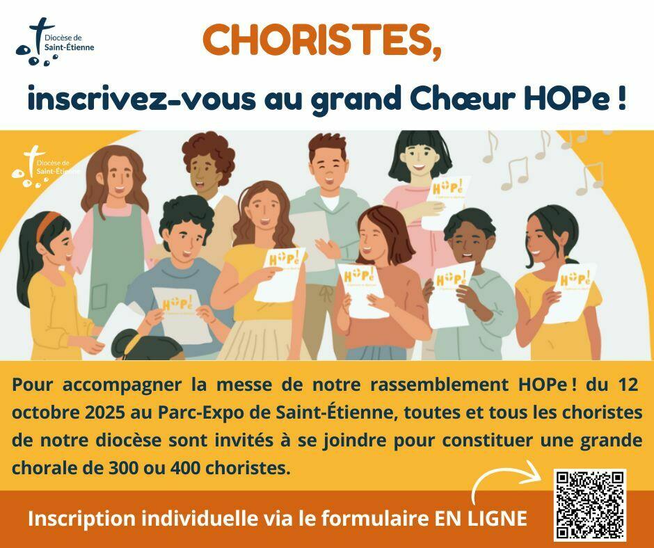 Choriste, inscrivez-vous au grand Choeur HOPe! 26/03/2025 Formulaire accessible en cliquant sur le globe orange en bas de page.(article paru en premier sur le site du diocèse de St Etienne)
