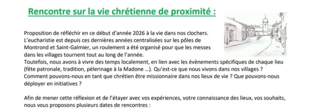 Une rencontre unique est prévue le 29 janvier à 20h pour la paroisse.