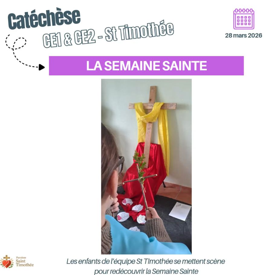 Retour en images sur une belle rencontre de caté ! Le 28 mars dernier, les enfants du niveau CE se sont transformés en acteurs d’un jour pour redécouvrir et nous faire revivre les grands moments de la Semaine Sainte. Découvrez cette catéchèse joyeuse, pleine de vie et d’espérance.