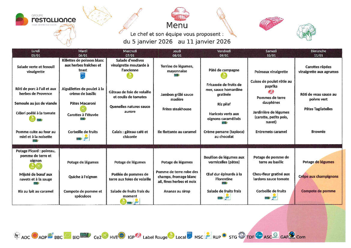 🍎MENU DE LA SEMAINE🍇