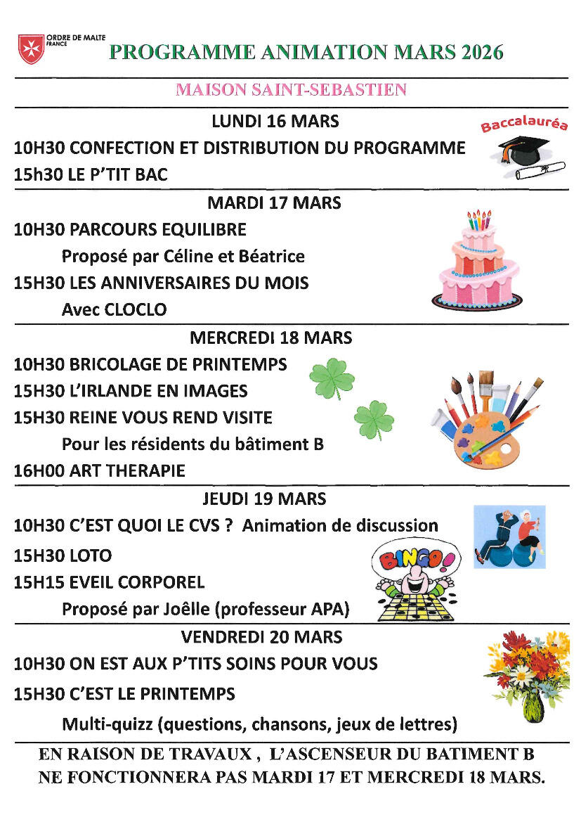 Accueil / Actualités / 🍀 ANIMATIONS DE LA SEMAINE : MAISON SAINT-SEBASTIEN 🎂