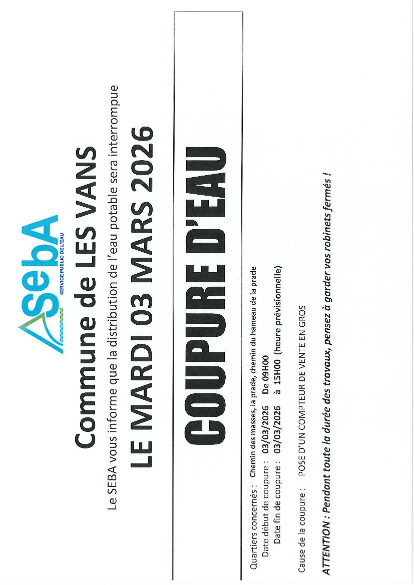 AVIS DE COUPURE D'EAU LES VANS