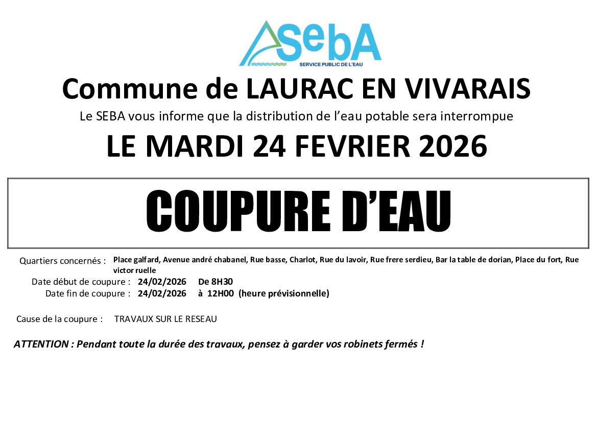 AVIS DE COUPURE D'EAU LAURAC EN VIVARAIS LE 24/02/2026