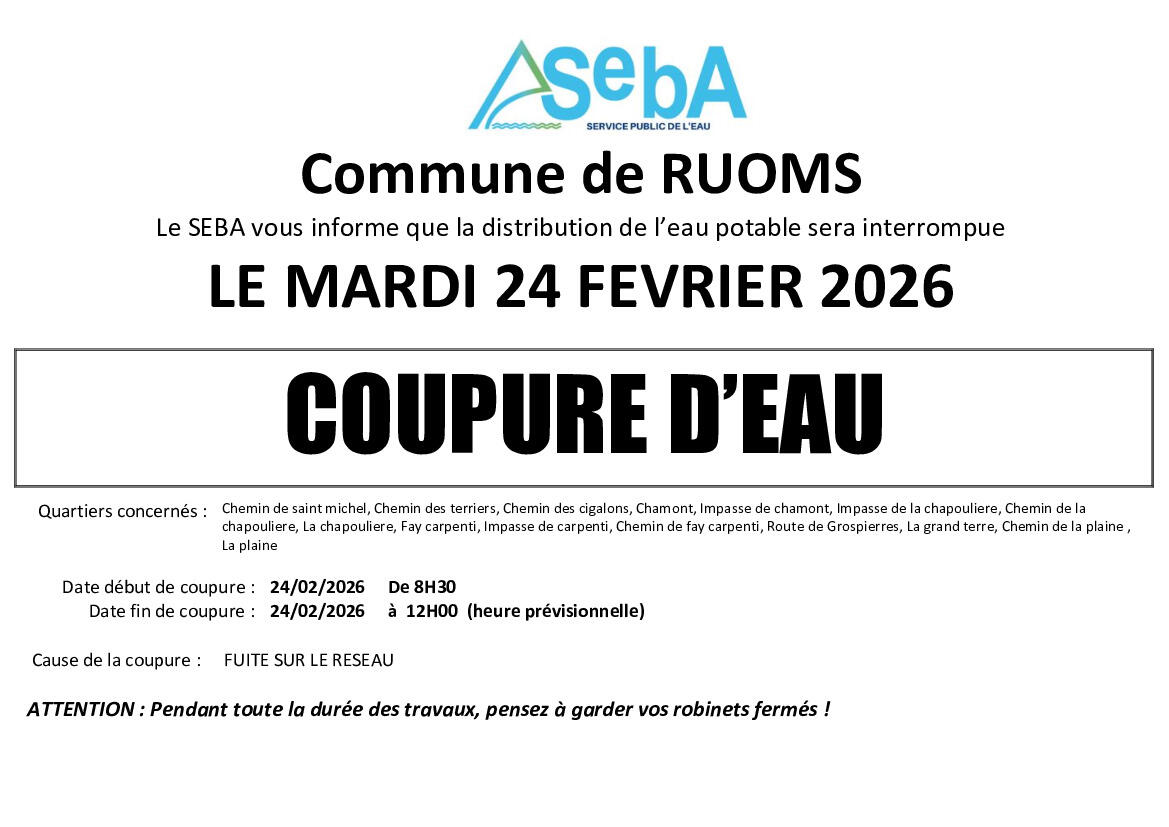 AVIS DE COUPURE D'EAU RUOMS LE 24/02/2026