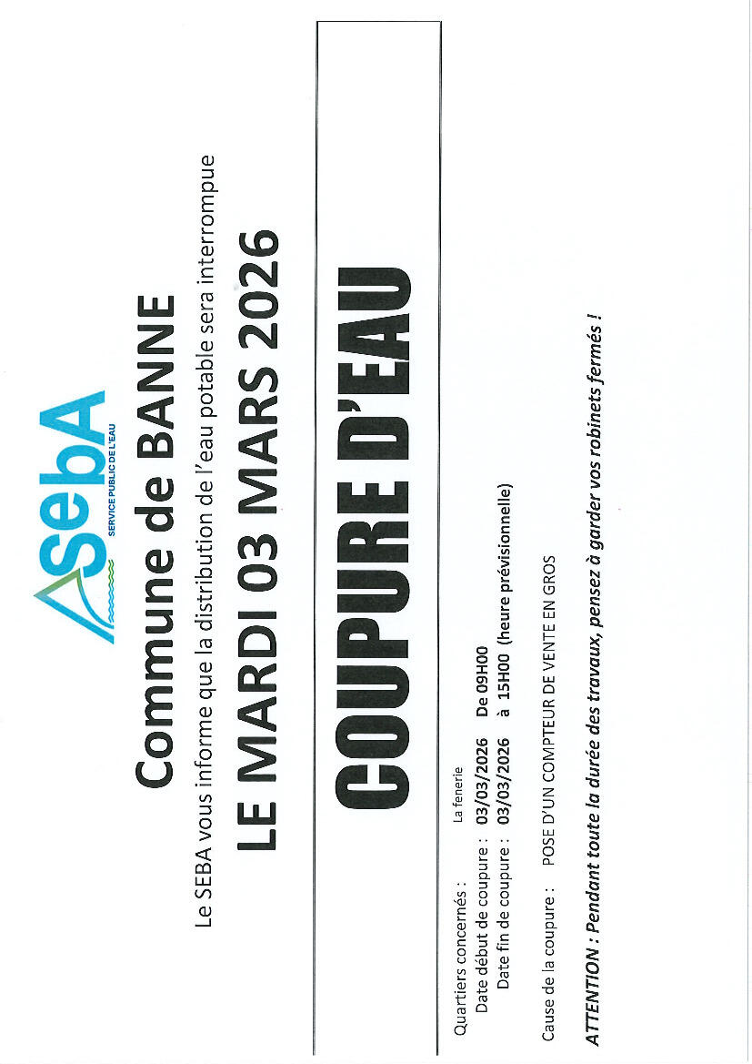 AVIS DE COUPURE D'EAU BANNE 03/03/2026