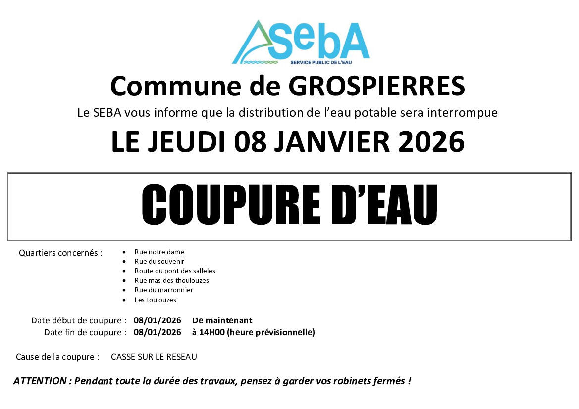 AVIS DE COUPURE D'EAU GROSPIERRES 08/01/2025