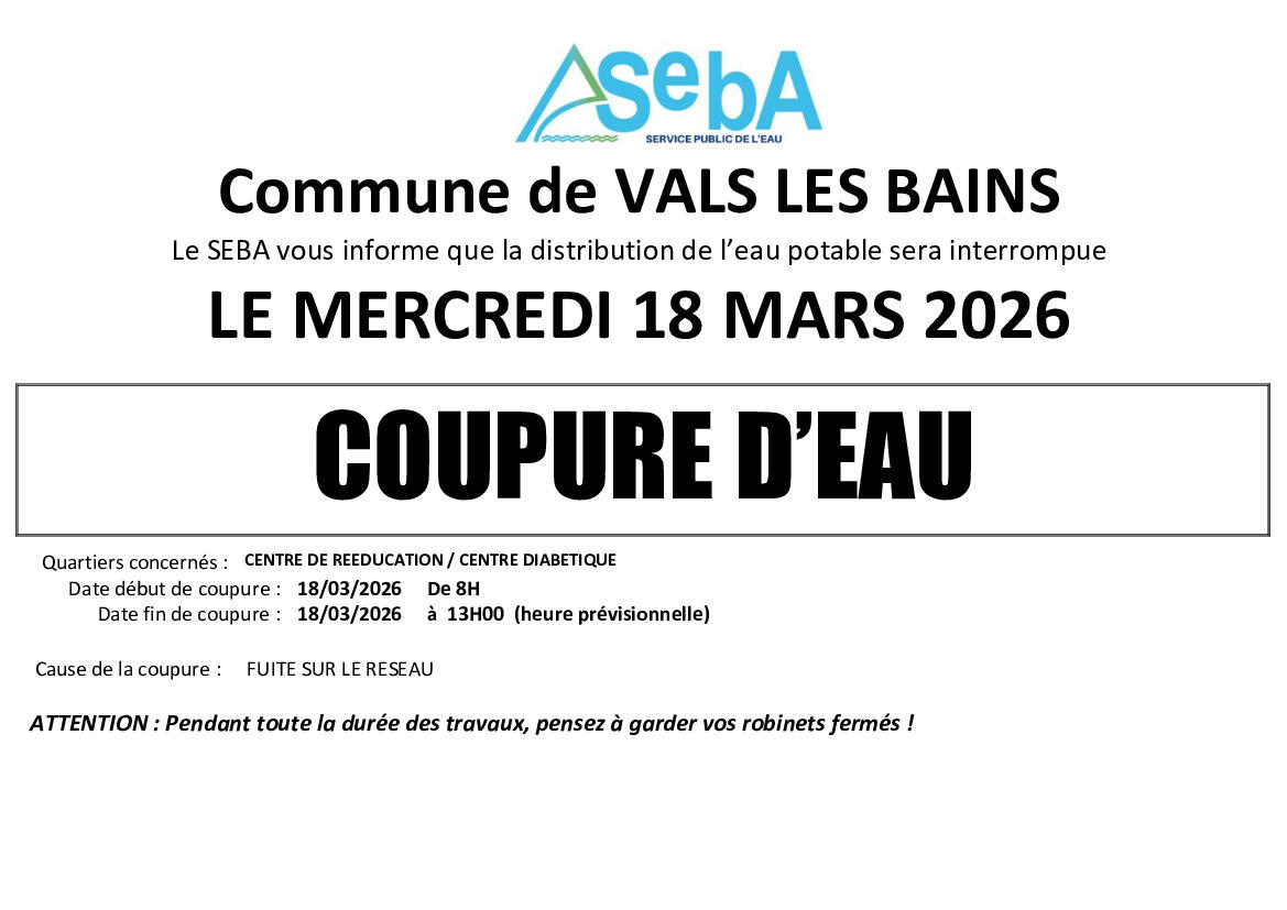 AVIS DE COUPURE D'EAU VALS 16/03/2026