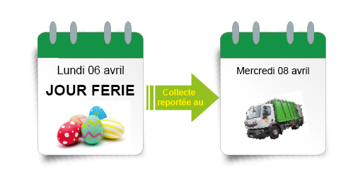 Vous trouverez ci-dessous l'organisation de la collecte pour le jour férié du Lundi 6 avril 2026.