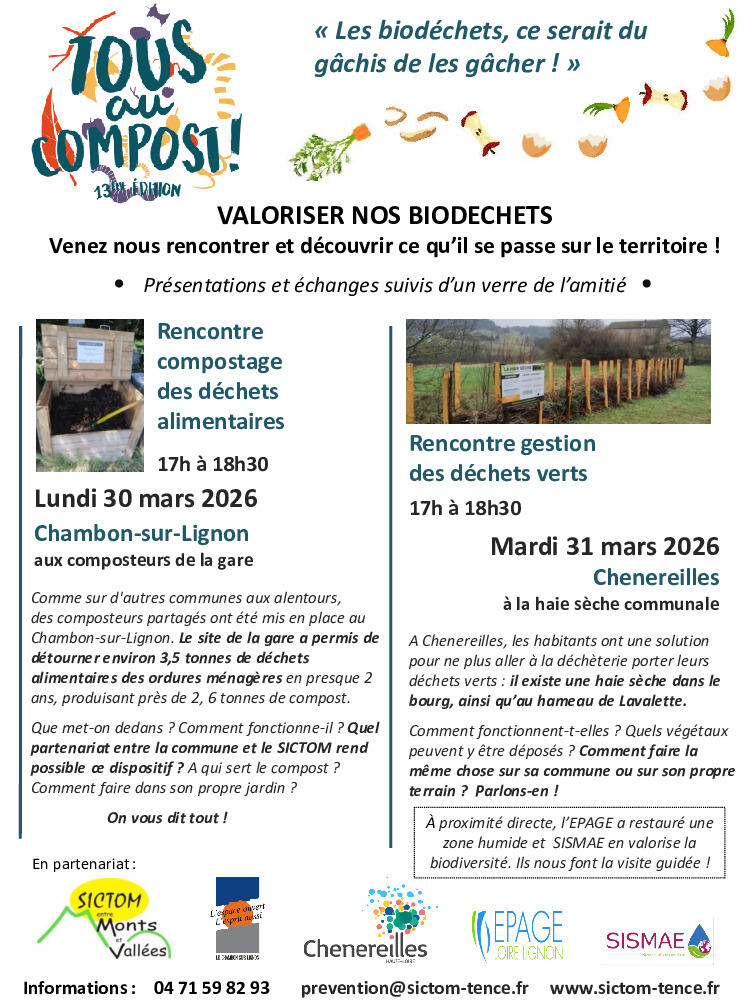 Lundi 30 mars 2026, 17h à 18h30 au Chambon-sur-Lignon pour parler du compostage partagé.