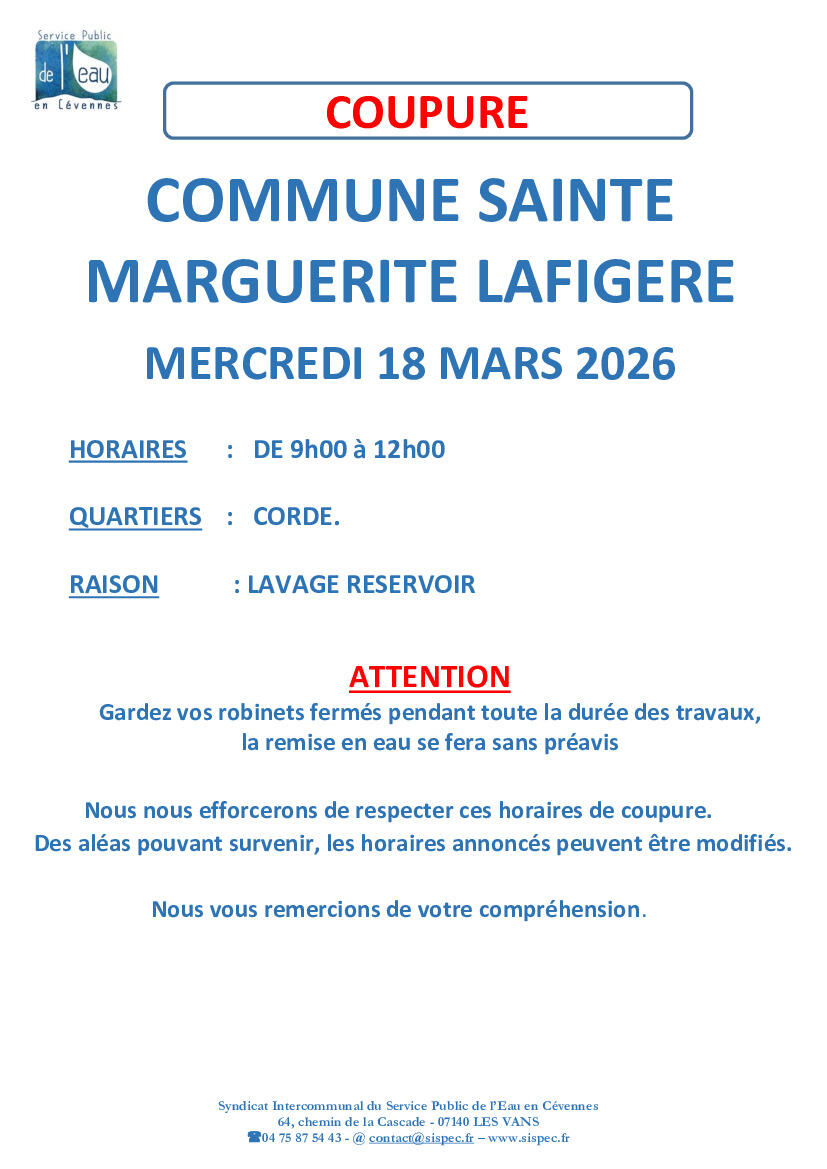 Avis De Coupure Sainte Marguerite Lafigere 18 Mars 2026 19/03/2026 AVIS DE COUPURE SAINTE MARGUERITE LAFIGERE 18 MARS 2026
