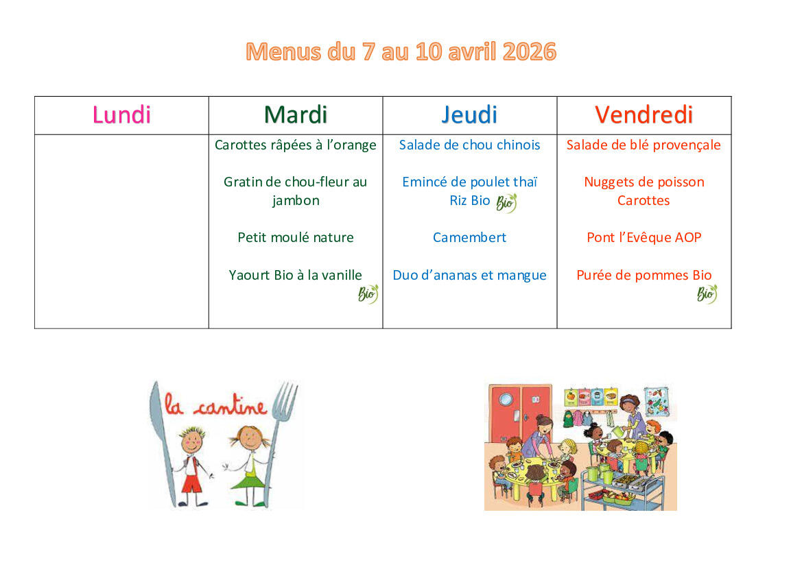 Menus cantine