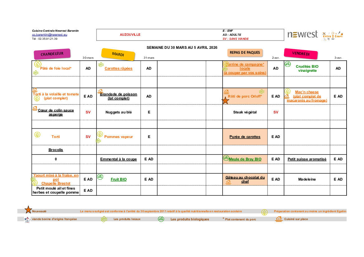 menus du mois d'avril