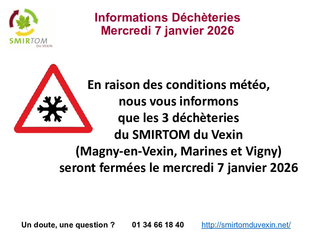 SMIRTOM du Vexin - Déchèteries fermées mercredi 07/01/2026