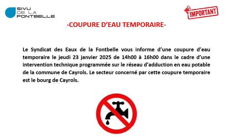 COUPURE D'EAU TEMPORAIRE COMMUNE CAYROLS