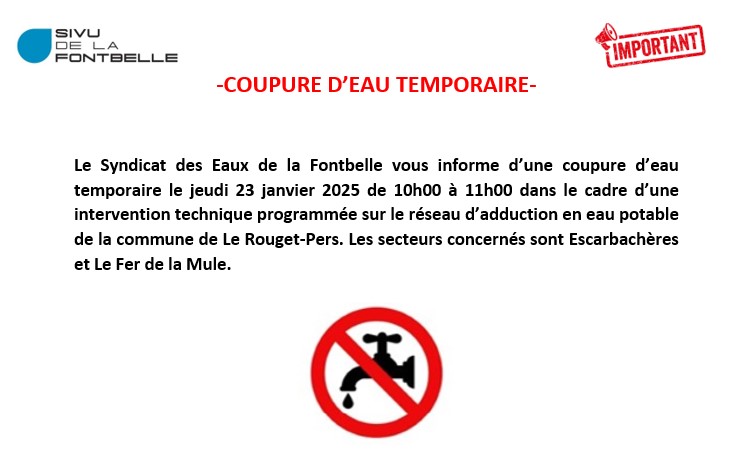 / COUPURE D'EAU TEMPORAIRE COMMUNE LE ROUGET-PERS