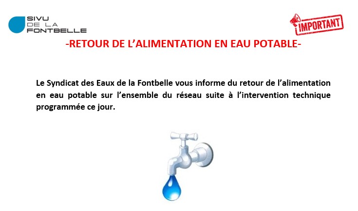 RETOUR DE L'ALIMENTATION EN EAU POTABLE