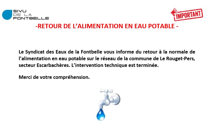 RETOUR DE L'ALIMENTATION EN EAU POTABLE LE ROUGET-PERS