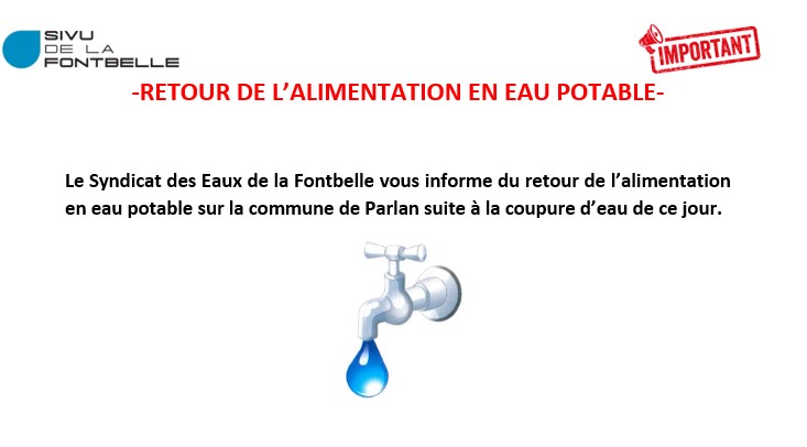 RETOUR DE L'ALIMENTATION EN EAU POTABLE PARLAN