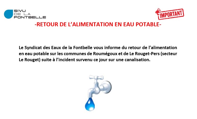 RETOUR DE L'ALIMENTATION EN EAU POTABLE ROUMEGOUX LE ROUGET