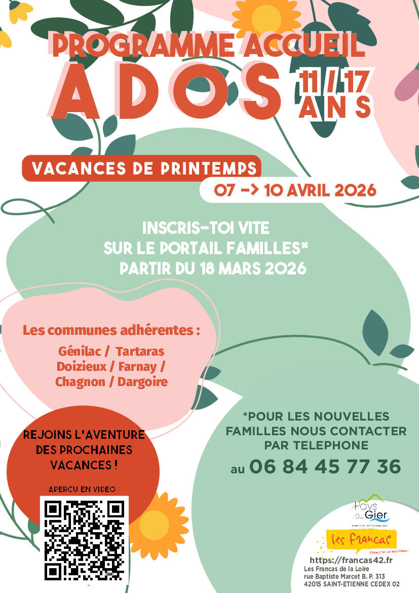 Programme accueil Ados 11/17 ans Vacances de pâques