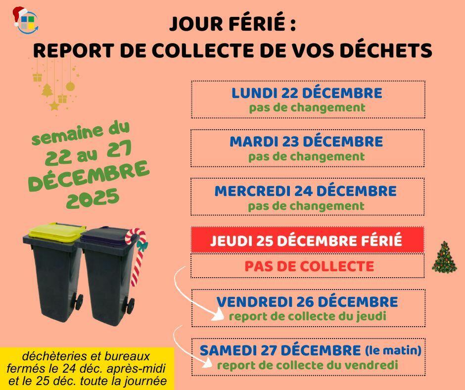 🎄 SERVICE DÉCHETS MODIFIÉ DURANT LES FÊTES DE FIN D'ANNÉE 🎄