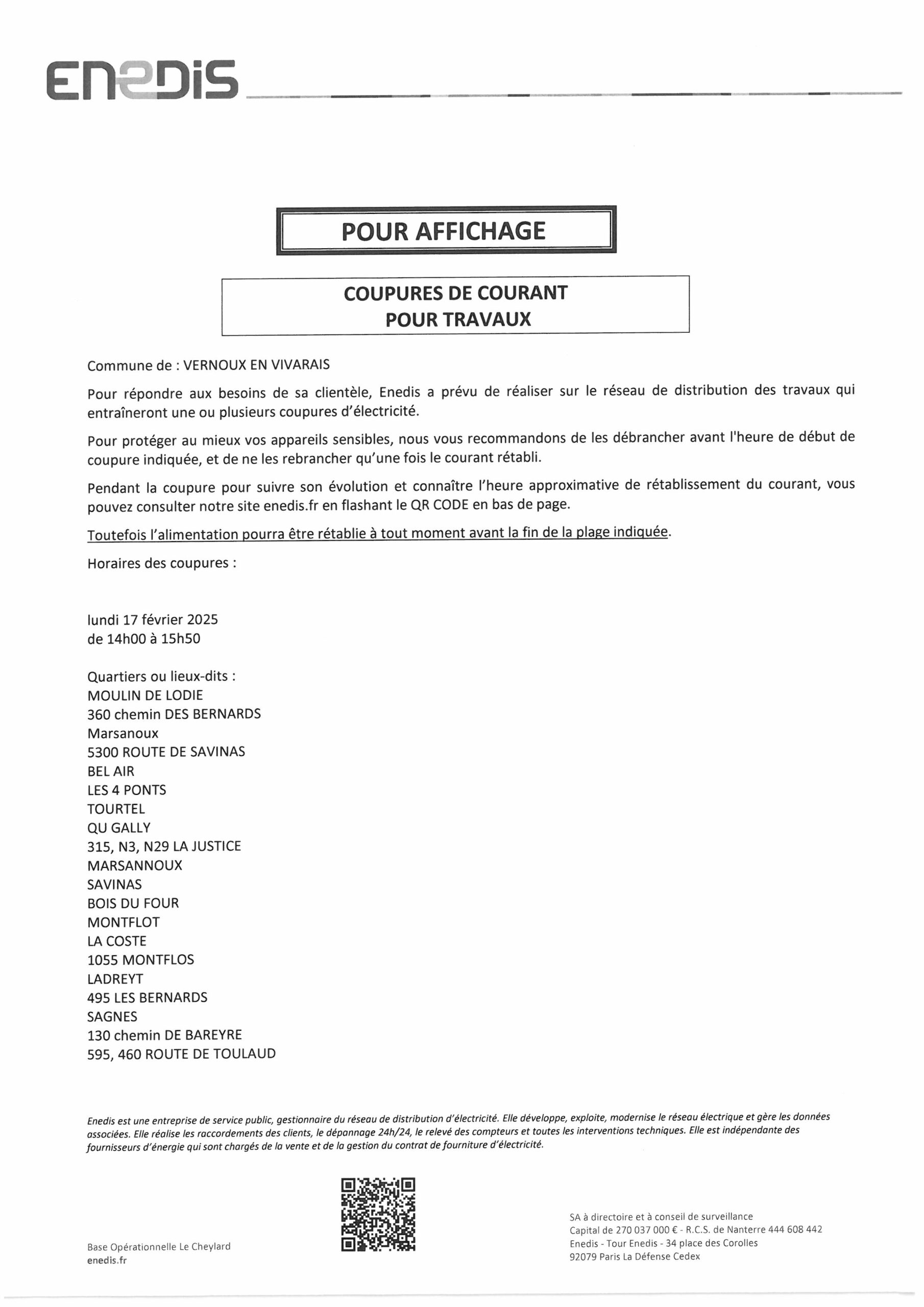 / Coupure de courant Lundi 17 février 2025 14h à 15h50