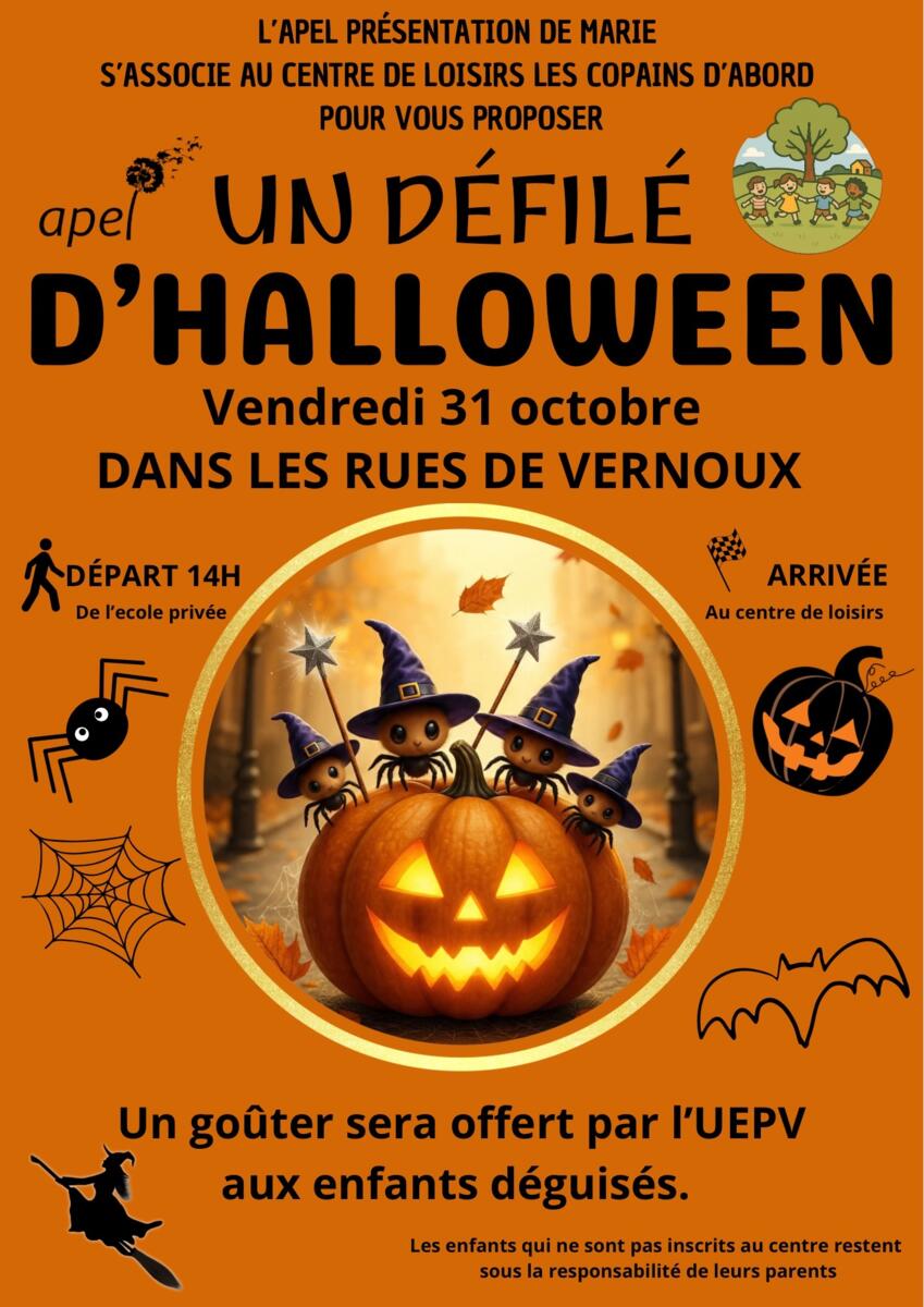 Défilé d’Halloween avec L’Apel présentation de Marie et le centre de loisirs les copains d’abord !