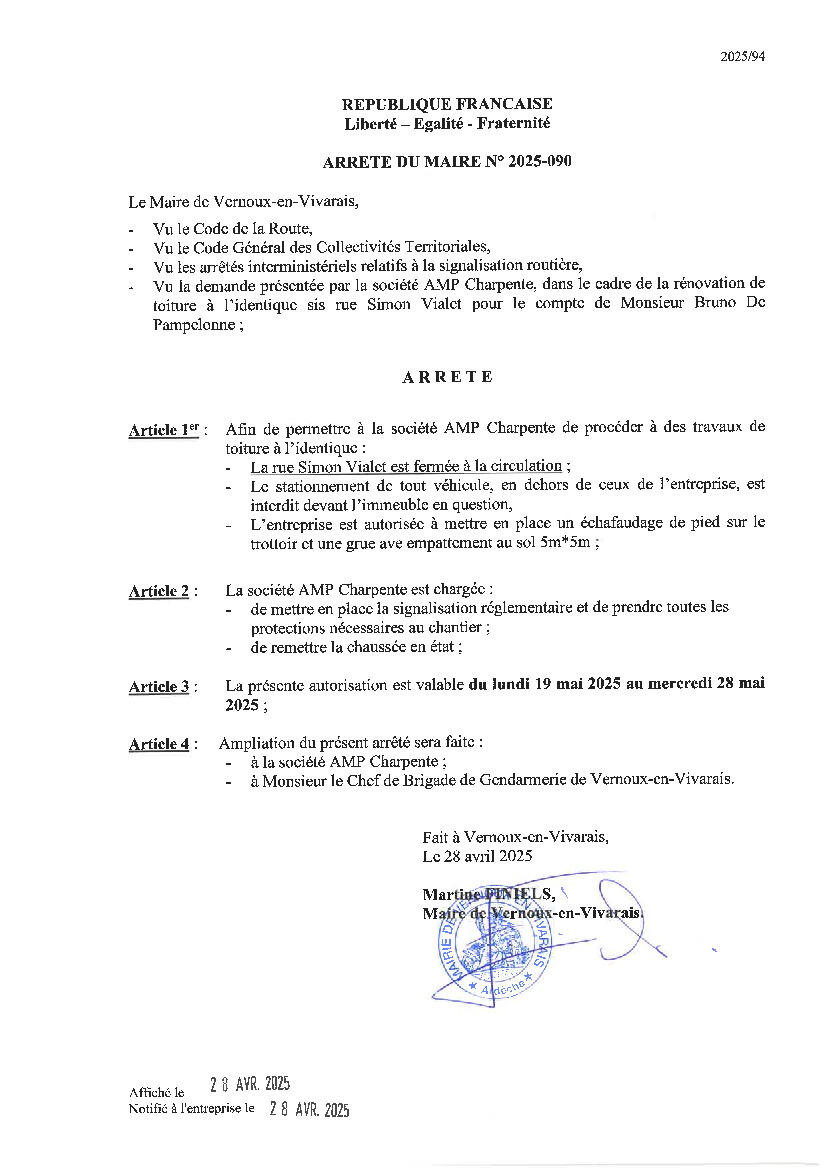 Votre mairie / Actualités / Fermeture rue Simon Vialet