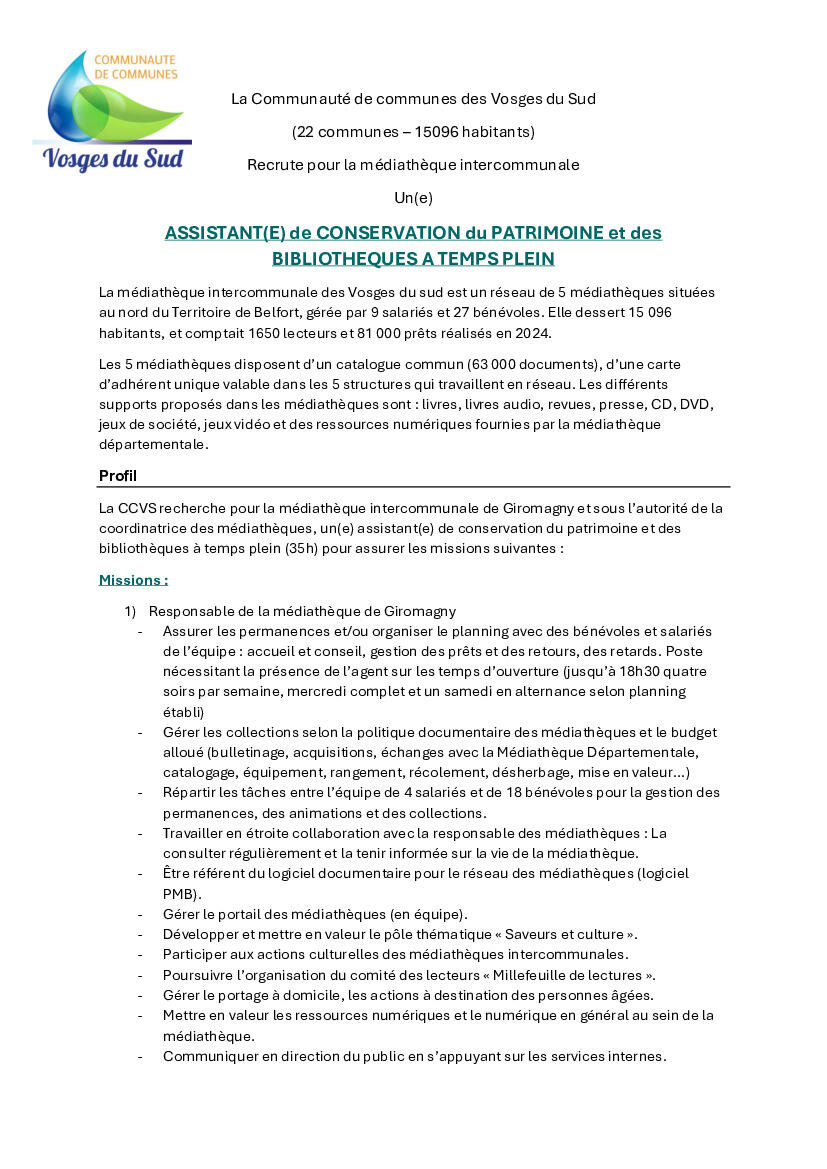 On recrute à la Médiathèque intercommunale des Vosges du sud
