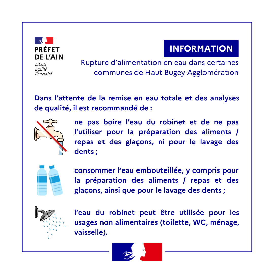 ℹ️ Le retour de l’eau est en cours de manière progressive. Les consignes restent inchangées : l’eau du robinet est toujours impropre à la consommation.