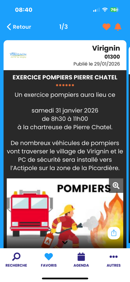 🚨 Exercice pompiers à Pierre Châtel - Samedi 31 janvier