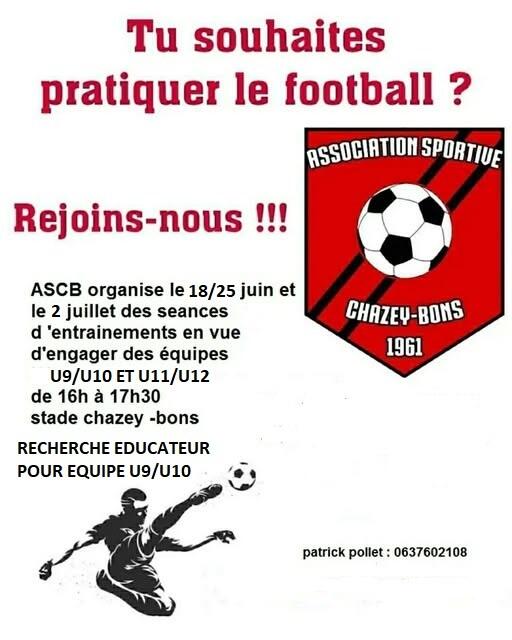 L'Association Sportive de Chazey-Bons ouvre les inscriptions de son école de Football.