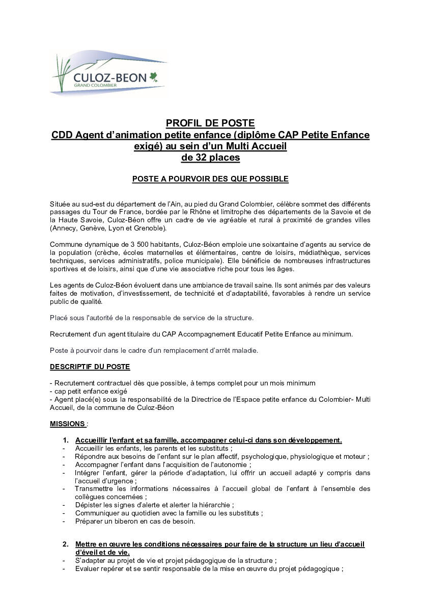 La mairie recrute CDD CAP Petite Enfance